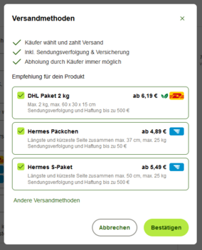Ganz unten kannst du auf "Andere Versandmethoden" klicken und individuelle Angaben machen: