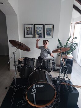 Die Grundaustattung an Becken ist dabei. Es sind Hihats von Paiste 2002, Ride und Crash Paiste PST 5. Die werden irgendwann ausgetauscht. -
