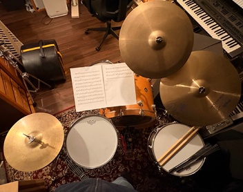 Weicht tatsächlich deutlich von meinem normalen Beckenset ab: hier waren es 14" K Custom Dark Hihats, ein 20" Formula 602 Modern Essentials als Crash/Ride links, rechts das Dark Energy Dark Dry Ride in 21" (mein geheimer "Schatz") und ein Sound… -