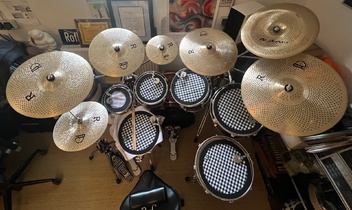Leider reichte die Zeit nur zum Probestellen. Es ist mein erstes Set ohne Bassdrumrossette, daran muss ich mich wohl zuerst noch gewöhnen.