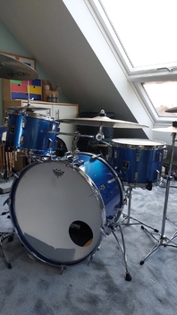 Da ich jetzt recht neu eine E-Gitarre in metallic rot, einen Bass in metallic blau habe, würde ein Drumkit in metallic grün (lackiert) recht gut dazu passen (wenn ich den Platz dafür hätte....).