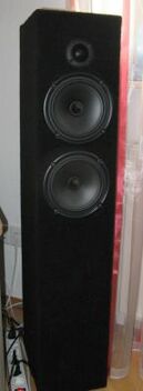 Die Boxen sind SABA 1300 (?) Professional mit 30cm Bass und zwei über Kreuz angeordneten Hochtönern, die einzeln gepegelt werden können.