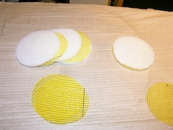 In der Mitte ist eine stabile Schaumstoff Scheibe und dahinter ein weiches Fasermaterial was mir schon ein bischen Zerfledert aussieht .