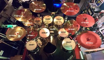 Premier Artist Birch 20/14, Sonor SQ2 Snare, Avedis Light Hats 14" und Thin Crash 18", Istanbul SE Jazz Ride 21".