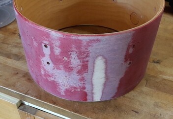Ausgangspunkt ist ein Pearl BLX tomtom in 12". Der Kessel wurde nun von mir gekürzt auf etwa 6,75". Das war genau die Grenze der alten Bohrlöcher bei einer Höhe von 10".