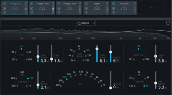 dann ein Limiter um die Spitzen abzufangen und ein Stereo Imager, welcher das Frequenzband (leicht) aufteilt und auf einen Stereokanal verteilt.