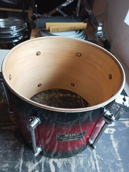 Der BD hat eh fast nichts gefehlt, FT und 13" hatten nach dem Planschliff einen Grat von etwa 2mm Breite. Den habe ich einfach mit Schleifpapier verrundet, sind die Kessel halt etwas mehr Vintage. (Ich Träume ja in letzter Zeit eh gerne von einem neuen Vintage-Set 😁) Felle sind schon wieder drauf, ich merke da eigentlich keinen Unterschied zu vorher. Ich kann also schon wieder spielen und die restlichen Trommeln in aller Ruhe fertig machen.