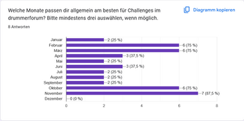 Allerdings werden wohl - wie vorhin auch schon - zwei Monate bzw. Zeiträume im Frühjahr und Spätjahr vorne liegen. Und das spricht wiederum für zwei Challenges pro Jahr. Oder wir lassen zwei Challenges mal parallel oder direkt nacheinander laufen ...