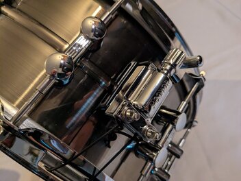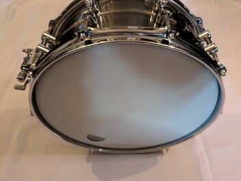 Die Snare ist in absolut neuwertigem Zustand, sogar das Schlagfell sieht fast jungfräulich aus, da sie fast nur Zeit im Regal verbracht hat.
