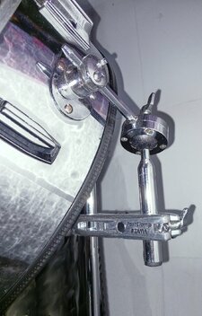 Zusätzlich lege ich die originale “Fre-O-Matic” Doppeltomhalterung, zwei Yamaha-Tomhalterungen (CL 901) und zwei absolut neuwertige Multiclamps von Tama (MC61) für die Aufhängung der Gong Bass Drum, und einen originalen Star-Stimmschlüssel in seinem schwarzen Etui mit dazu.