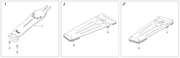 Auf die Schnelle. Du siehst hier in den beiden rechten Skizzen die beiden Bodenplatten. Die vorhandenen Löcher (mit Gewinde), sind auf beiden Seiten identisch. In der linken Skizze siehst Du, dass das Pedal mit diesen beiden Schrauben aus der Grundplatte gelöst wird.