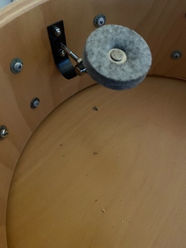 Ich habe hier eine ganz feine Phonic Oak Snare aus den 80er, die eine „Besonderheit“ hat, die ich mir nicht erklären kann: was sind das für drei Metallabdeckungen/Löcher?