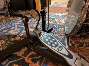 Exakt das hatte ich mal mit einer 20" Basdrum gebaut. Ich hatte eine Fußmaschine so umbauen können, dass sie wie die gezeigte Tama funktioniert.