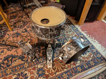 Während andere Stand-Toms zur Bass-Drum umbauen habe ich Standbeine an meine 18er Bass-Drum geschraubt. Ursprünglich um ein Setup á la Moe Tucker auszuprobieren, aber dann ist mir aufgefallen, dass die Bass-Drum nicht nur von oben mit Mellets sondern auch von unten mit der Fußmaschine angeschlagen werden kann. Prinzipiell lässt sich das so spielen - quasi Tripple-Bass - aber der Schläger muss so eingestellt werden, dass er fast schon auf dem Fuß liegt um durch Tritt in die Vertikale gegen das Fell bewegt zu werden - und prallt dann unbequem zurück gegen den Fuß. Hat jemand eine Idee wie eine Fußmaschine eingestellt sein könnte, um damit von unten gegen die Bass-Drum zu schlagen?