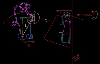 Die Änderung des Abstandes D vom Drehpunkt zum Fell ist die einzige sinnvolle Variante um den Winkel alpha zu verändern. (Wenn L = const. ist)
