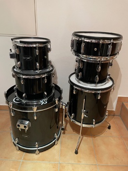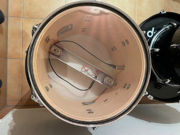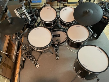 Das vorletzte Foto zeigt beispielhaft den Aufbau des kompletten Sets, wie ich es gespielt habe. Das letzte Foto zeigt die Bassdrum mit montierten Trigger. Die weiteren gezeigten Gegenstände wie Becken, Hardware oder sonstiges gehören nicht zum Angebot!