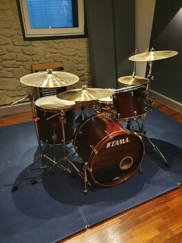 Eine Tama Starclassic 14" Brass Snare, sowie Beckenständer (Millenium) wären ebenfalls verfügbar.