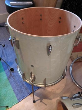 Die Snare ist ok, die Floortom hat sogar einen akzeptablen Klang, aber die 12" und 13" Toms klingen nicht so gut. Die Bassdrum muss ich mir nochmal genauer anschauen (hier war das Resofell ab und stattdessen haben die Vorgänger ein Filz-Trageband am Kessel festgetackert.)