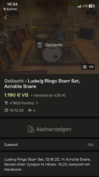 Ich bin seit längerem auf der Suche nach einem gut erhaltenen Retro-Ludwig Kit. Ich habe nun das hier gefunden, inklusive Hardware und Becken für 1200€. Es fehlen allerdings die Badges und es ist für mich nicht ganz nachvollziehbar, ob es ein original ist, was dagegen sprechen könnte und worauf ich achten sollte. Ich müsste es morgen abholen. Bin dankbar für jede Rückmeldung!