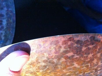 Die Bassdrum ist in einem Satin Rot lackiert worden, das kleine Tom ist mattschwarz, das große cremeweiß (alle drei sauber vom Herrsteller lackiert) die Snare (da Eigenbau) wurde von mir Ebenholzfarben gebeizt.